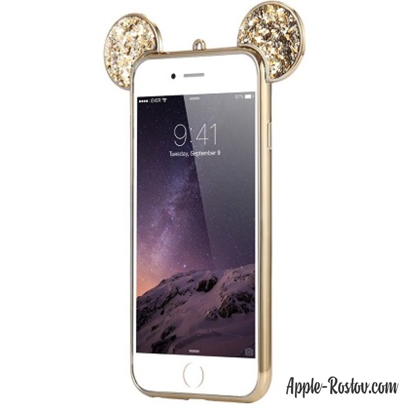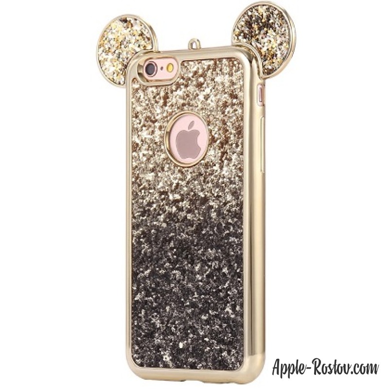 - Чехол с блёстками и ушками Микки Мауса