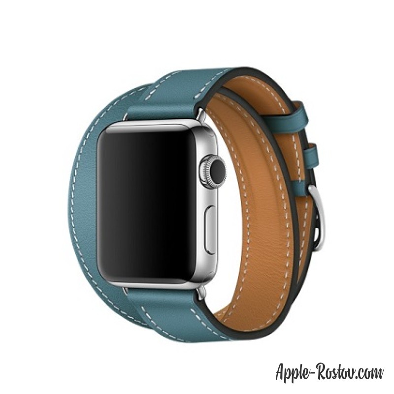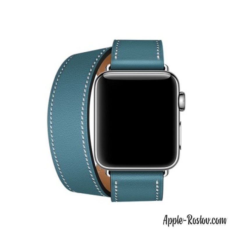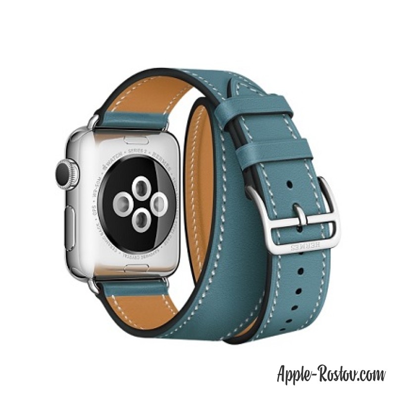 - Ремешок Double Tour из кожи Swift цвета Bleu Jean (для корпуса 38 мм), размер Regular (стандартный)
