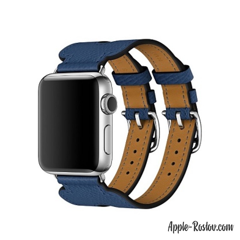 - Ремешок Manchette из кожи Epsom цвета Bleu Agate с двойной пряжкой (для корпуса 38 мм)