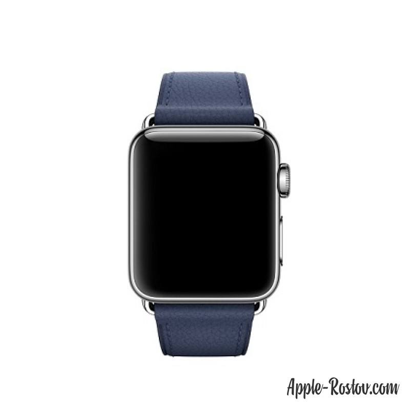 - Ремешок тёмно-синего цвета с классической пряжкой (для корпуса 38 мм)