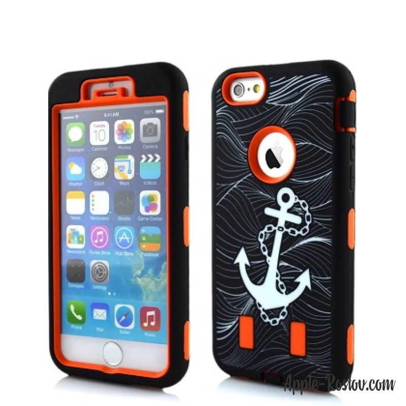 Усиленный чехол чёрно-оранжевого цвета с рисунком якоря